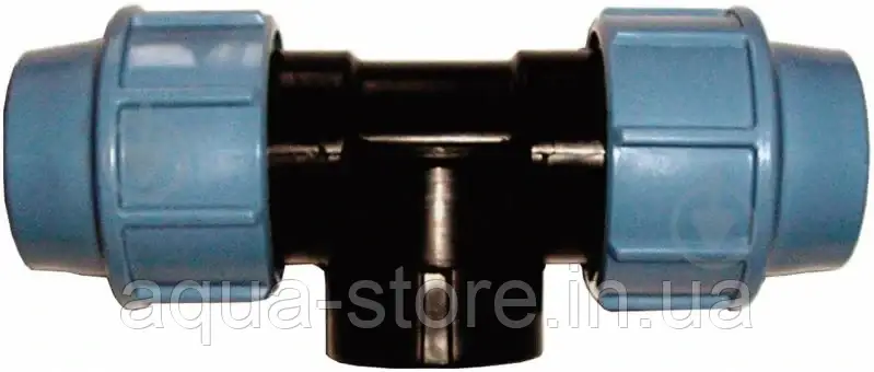 Трійник 32х1" РВ ПНД затискний призначений для надійного пристрою повороту трубопроводу при будівництві систем питного або технічного водопостачання, систем поливу, систем напірної каналізації, при будівництві систем водовідведення.